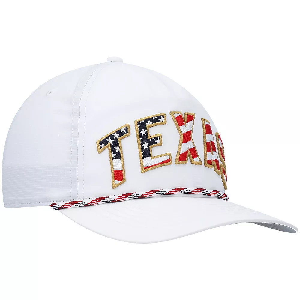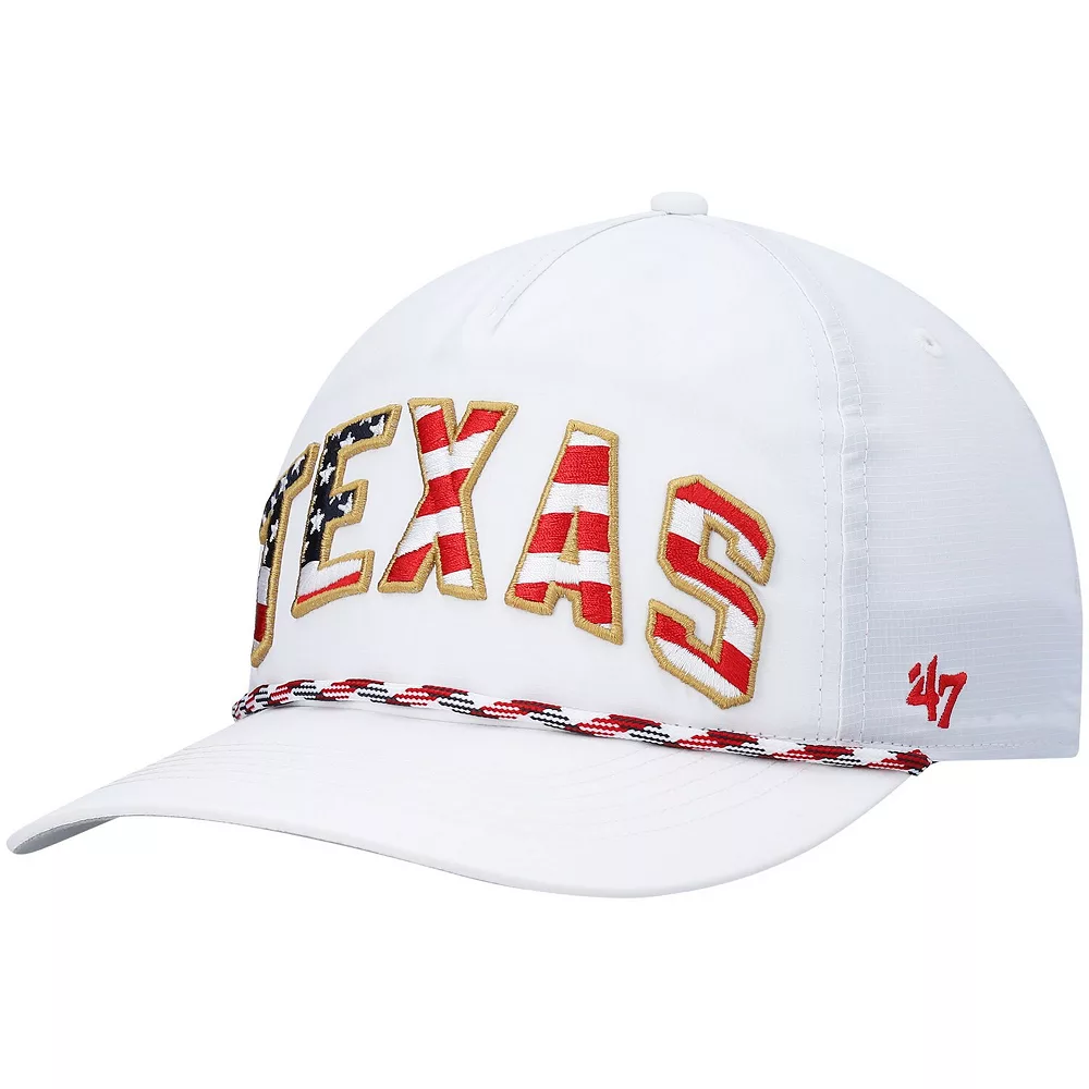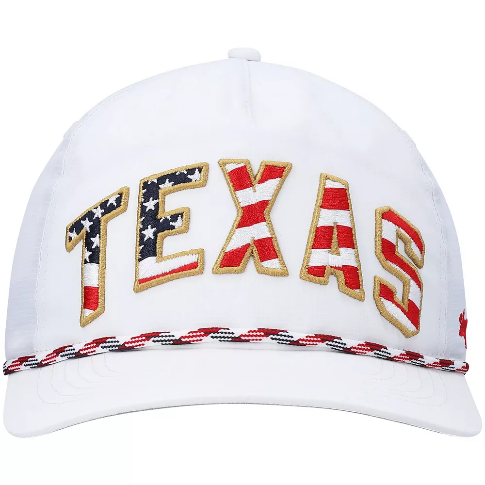 Express your patriotism and fandom of the Texas Longhorns with this Stars and Stripes Flag Flutter Hitch snapback hat from ’47. A contrast-color undervisor and a braided rope across the visor add unique flair to this exhilarating piece. The high crown and curved bill are as classic as a structured cap gets, so be sure to pick up this cap to represent the Texas Longhorns and the stars and stripes on the flag.