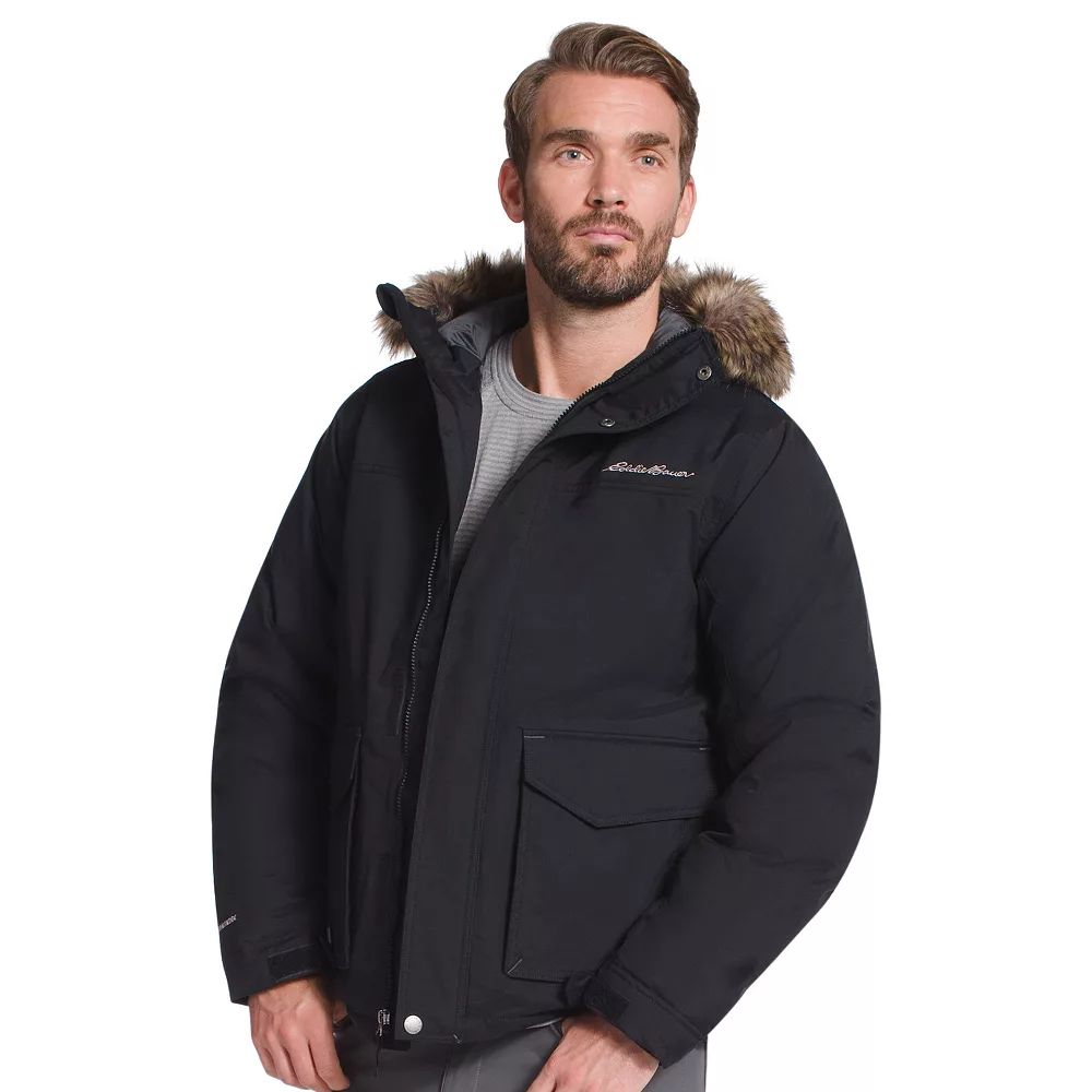 Conquer cold temperatures in comfort and style with this men’s Eddie Bauer hooded parka jacket.