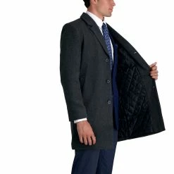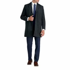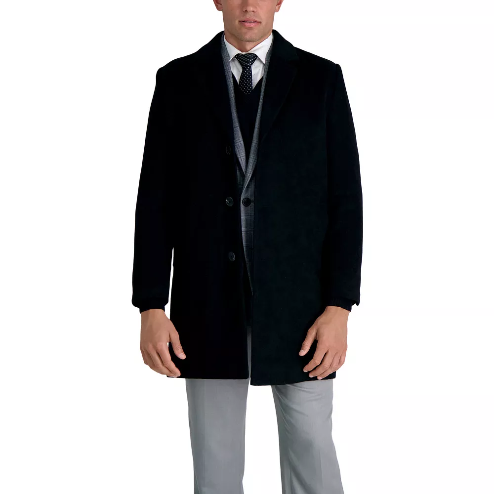 Look sophisticated while staying warm with this men’s Haggar twill top coat.
