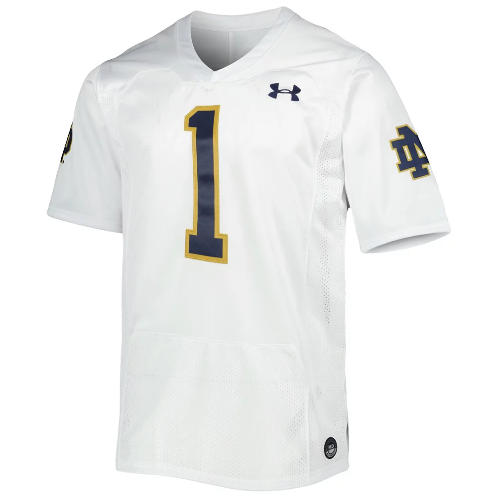 This Notre Dame Fighting Irish Premier Limited jersey from Under Armour features mesh panels for breathability on game day. The bold graphics on this replica jersey help you feel like a member of your favorite team. This nylon piece is a must-have in any Notre Dame Fighting Irish collection.